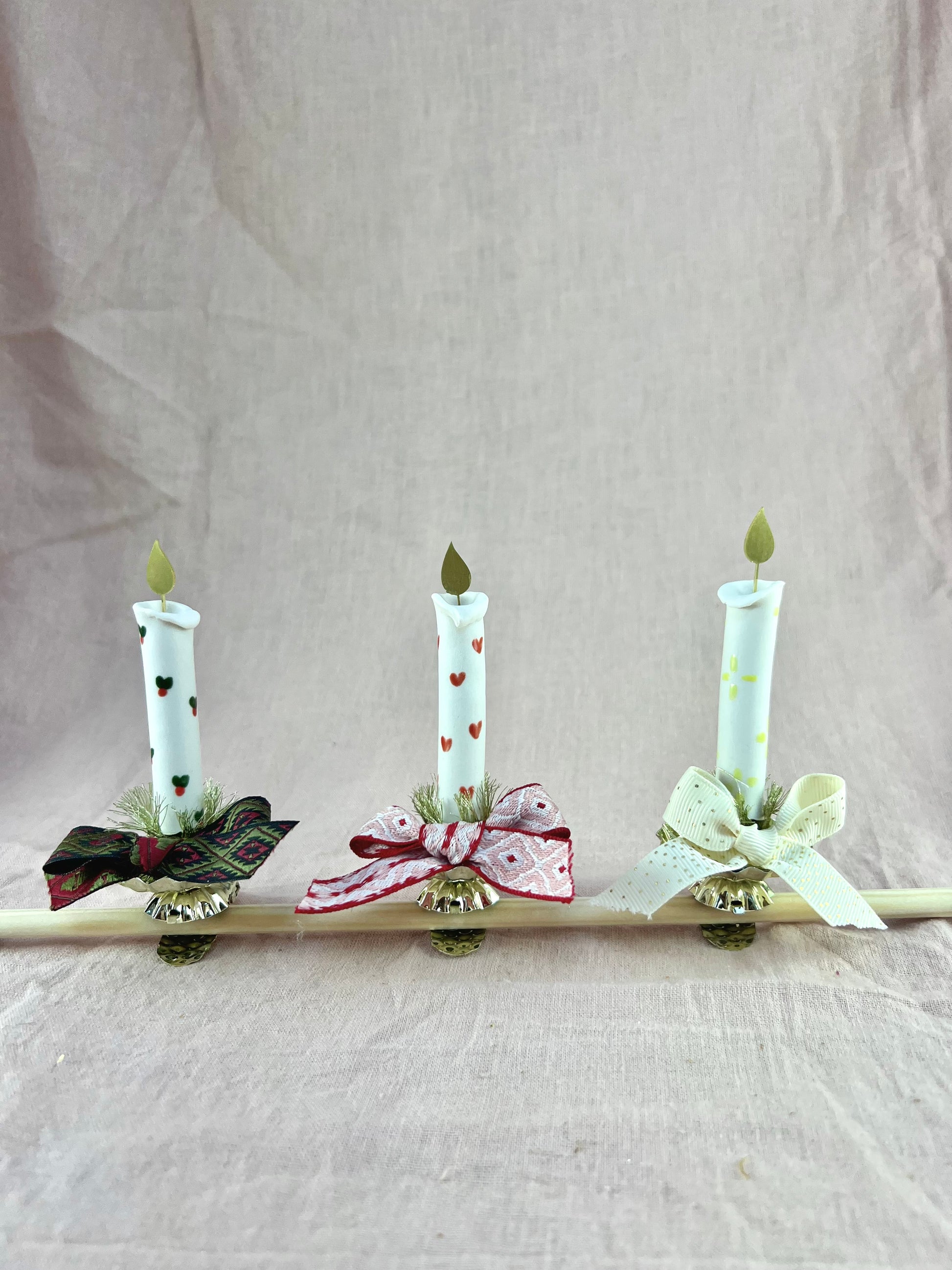 Tre skønne Evighedslys i porcelæn, med en messingflamme på toppen og en klips i bunden. Hvert lys er håndlavet og håndmalet med forskellige illustrationer. Lysene kan klipses på juletræet, hvor messingflammen på smukkeste vis reflekterer lyset fra juletræets lyskæde. Lysene kan også klipses på bøger der ligger ned, en lille hylde, en krans eller hvad end man kan finde på.