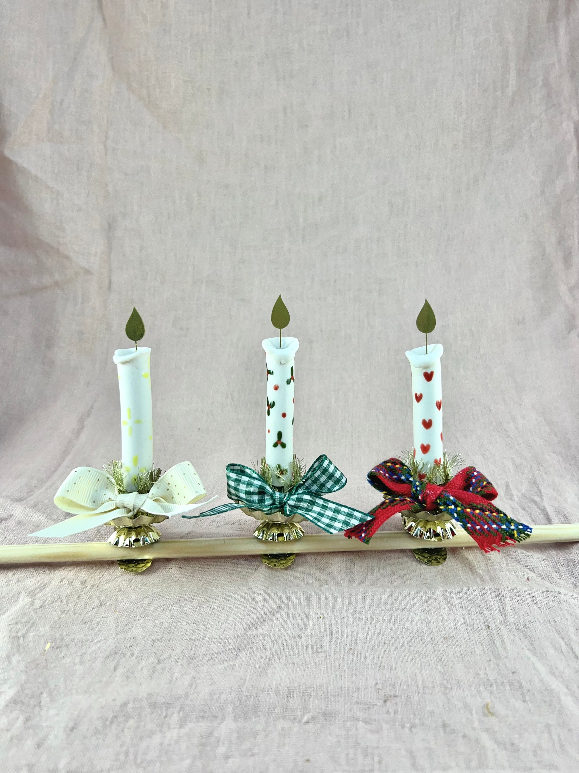 Tre skønne Evighedslys i porcelæn, med en messingflamme på toppen og en klips i bunden. Hvert lys er håndlavet og håndmalet med forskellige illustrationer. Lysene kan klipses på juletræet, hvor messingflammen på smukkeste vis reflekterer lyset fra juletræets lyskæde. Lysene kan også klipses på bøger der ligger ned, en lille hylde, en krans eller hvad end man kan finde på.