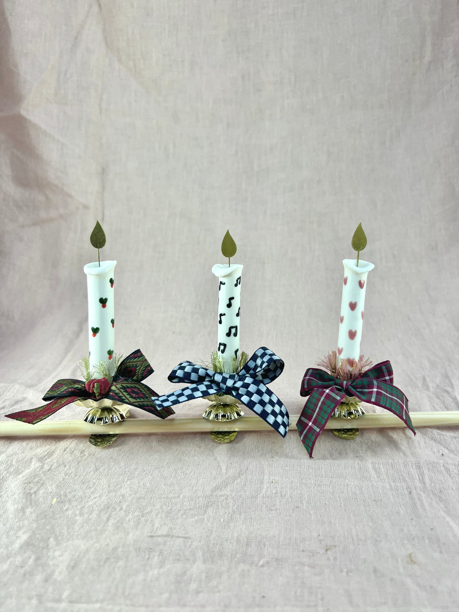 Tre skønne Evighedslys i porcelæn, med en messingflamme på toppen og en klips i bunden. Hvert lys er håndlavet og håndmalet med forskellige illustrationer. Lysene kan klipses på juletræet, hvor messingflammen på smukkeste vis reflekterer lyset fra juletræets lyskæde. Lysene kan også klipses på bøger der ligger ned, en lille hylde, en krans eller hvad end man kan finde på.
