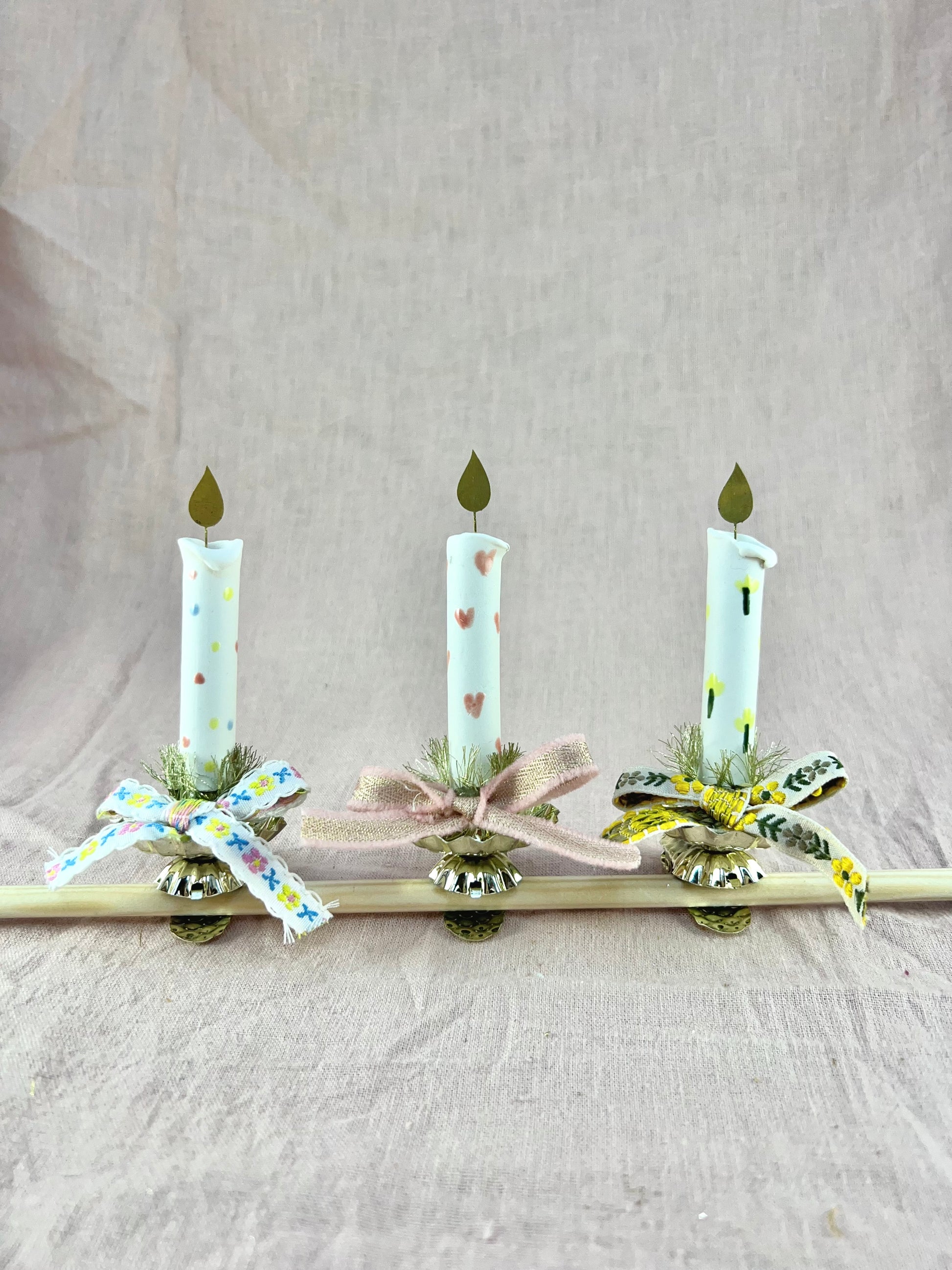 Tre skønne Evighedslys i porcelæn, med en messingflamme på toppen og en klips i bunden. Hvert lys er håndlavet og håndmalet med forskellige illustrationer. Lysene kan klipses på juletræet, hvor messingflammen på smukkeste vis reflekterer lyset fra juletræets lyskæde. Lysene kan også klipses på bøger der ligger ned, en lille hylde, en krans eller hvad end man kan finde på.